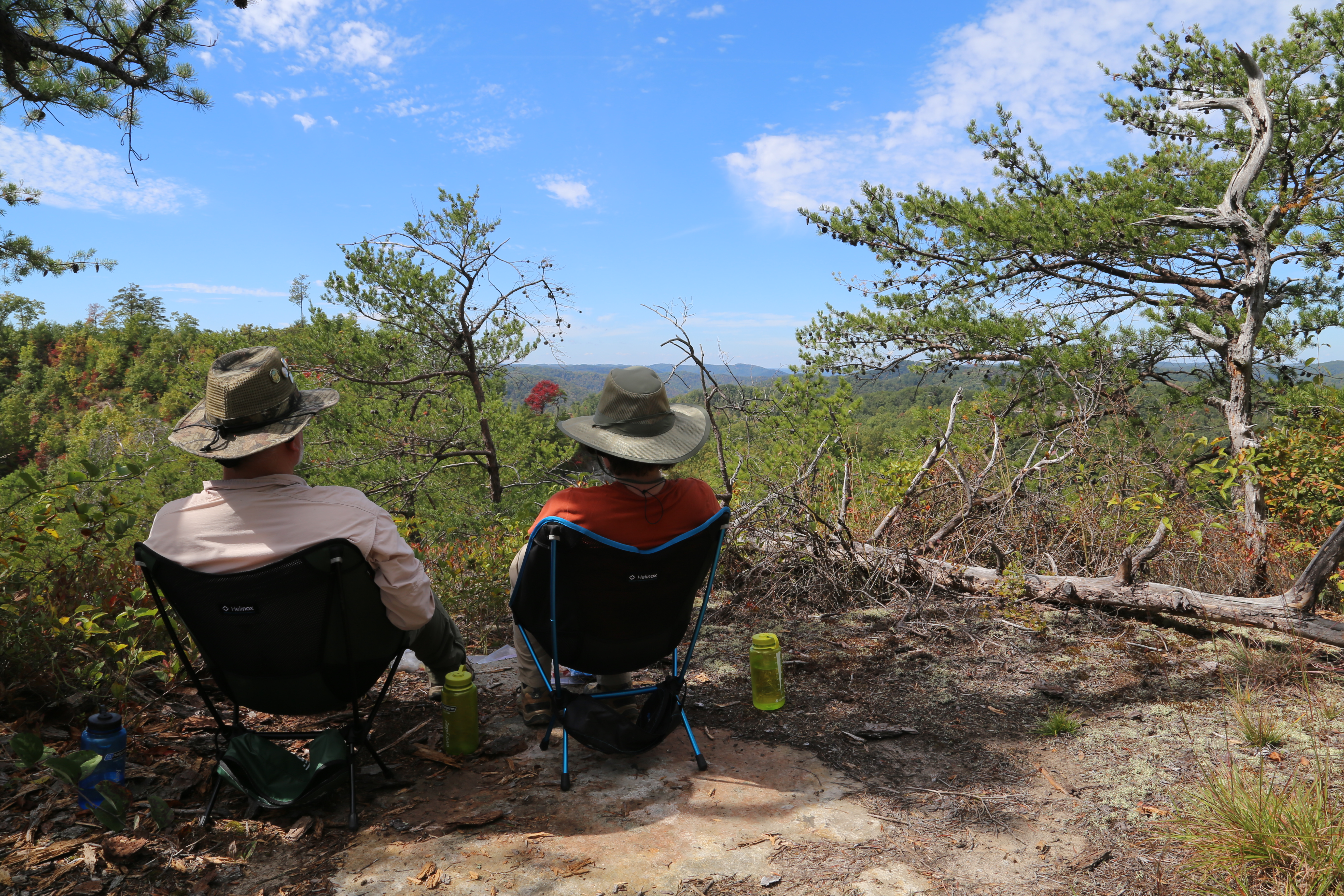 Regarding views and campsites I will make my usual recommendation to get the OutrageGIS backpacking map for RRG (link: https://www.outragegis.com/trails/product/red-river-gorge-backpacking-map/) because finding both usually involves venturing onto the unofficial trails not shown on the official USFS maps. You will not have the sweeping views of the Auxier Ridge, Double Arch area, but you will also encounter far fewer people. If you are camping with a hammock you will have more flexibility, but with a tent, good campsites that also meet the requirement to be 300 feet off of the official trails, can be difficult to find without the map.